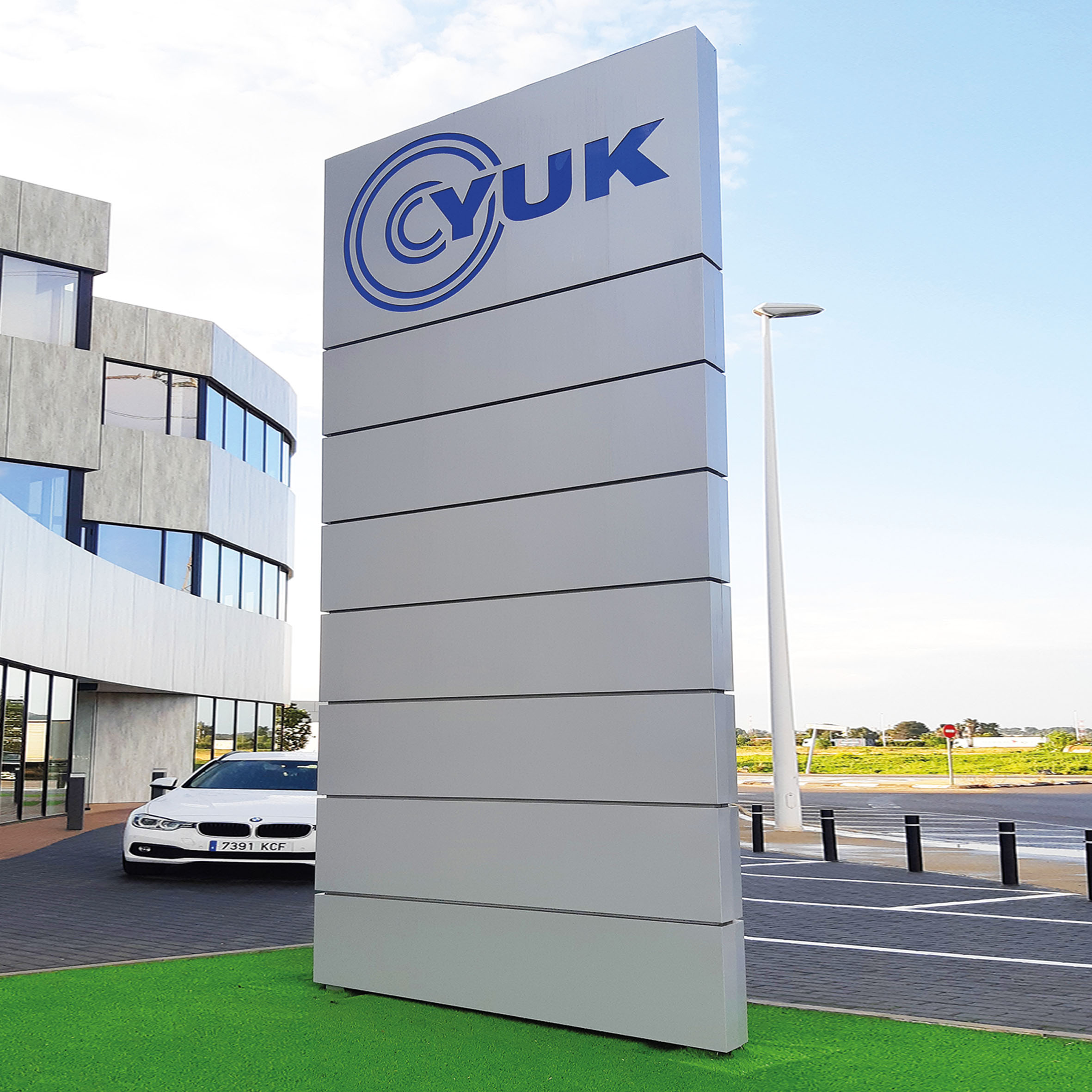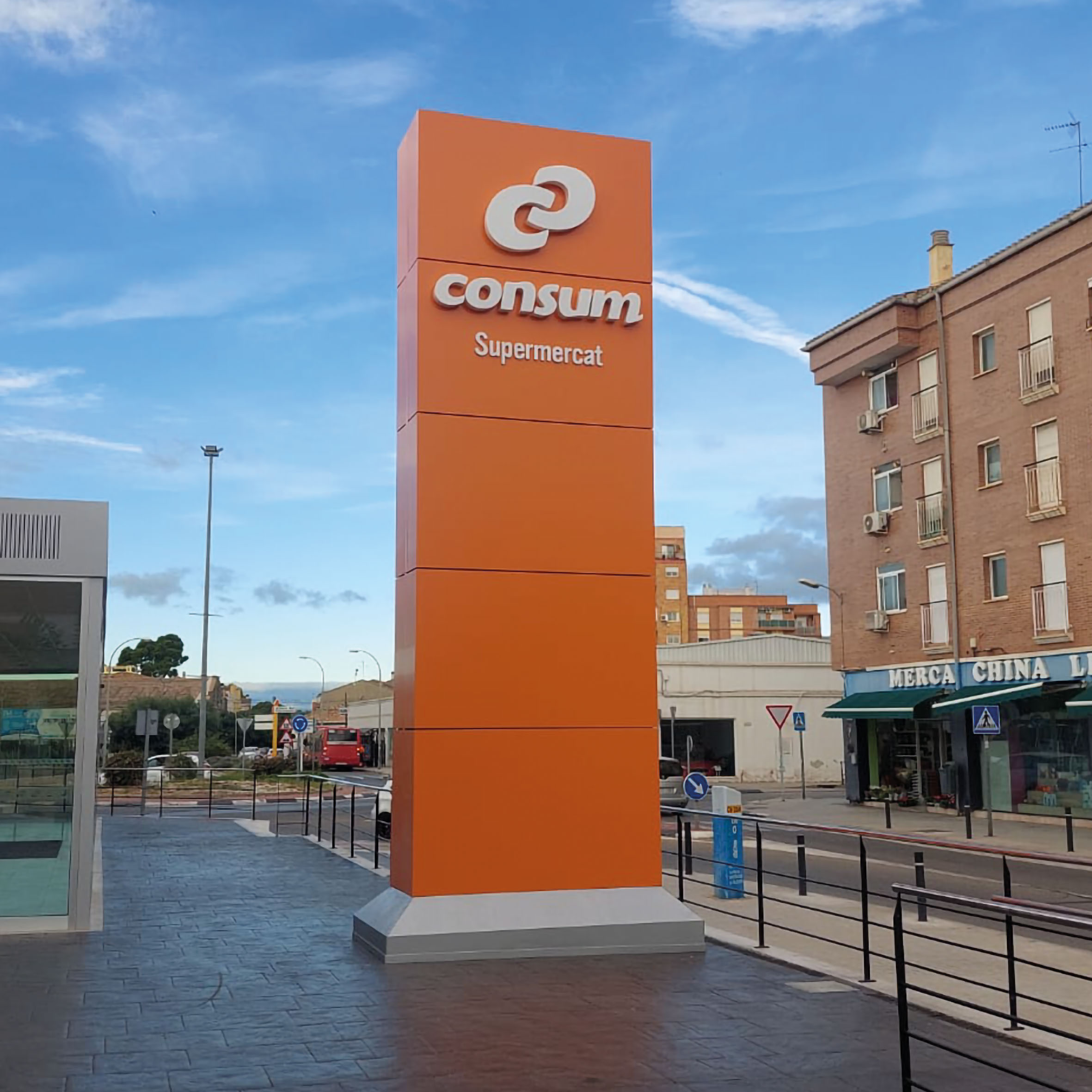 Estructuras verticales de gran impacto, perfectas para entradas de centros comerciales, naves industriales o espacios corporativos. Destacan por su presencia imponente y alta visibilidad a distancia.