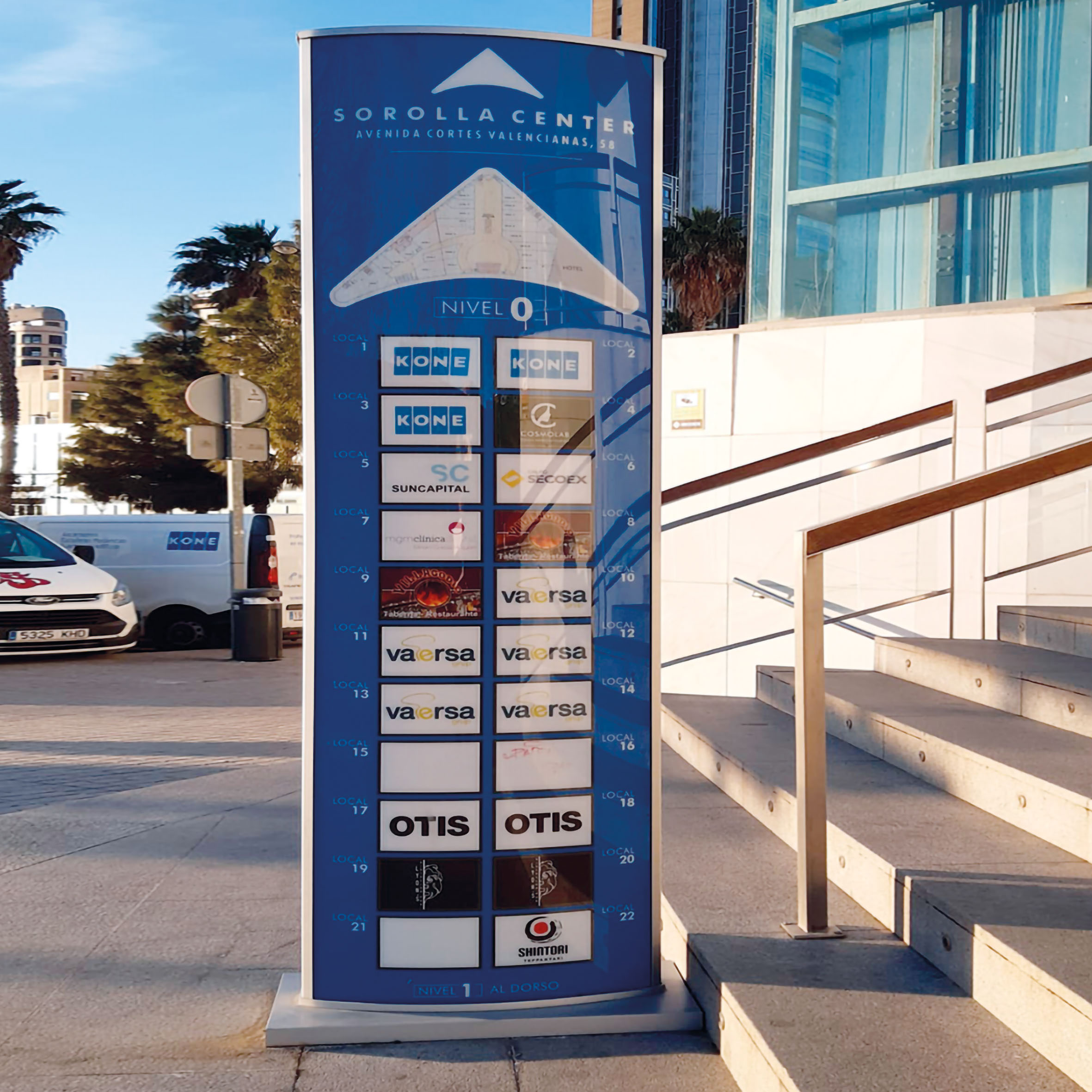 Soportes ubicados en exterior o interiores que aseguran gran visibilidad en entornos de alta afluencia peatonal y vehicular. Una opción eficaz para reforzar presencia local.